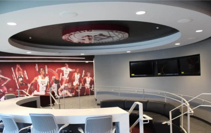 We recently wrapped up at the new E.B. Cushing Stadium for the nationally ranked Texas A&M Track and Field program. The 90,500 square foot facility seats approximately 2,200 and includes a nine-lane sprint and hurdle